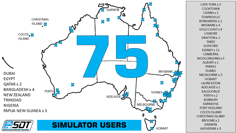 Our simulators are in use across Australia and in many overseas locations (Dubai, Qatar, Egypt, Nigeria, Bangladesh, New Zealand, Papua New Guinea, Trinidad)