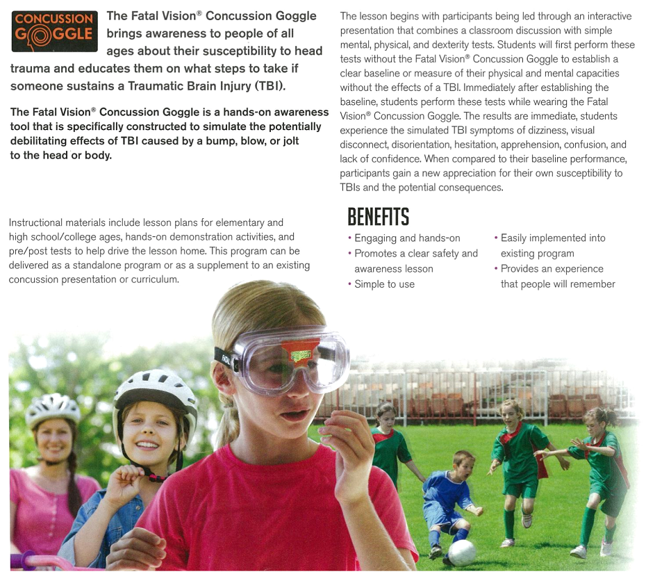 Concussion and traumatic brain injuries are big news in sport over recent years. The Concussion Goggle and associated training resources are used by sporting codes and schools to provide awareness to umpires and officials about detecting TBI in a player.