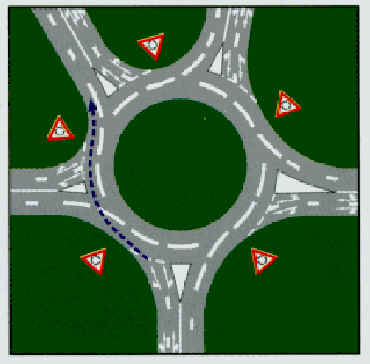 Give-way to all traffic already on the roundabout, travel only in the direction indicated by the arrows, always travel in a clockwise direction, as soon as you pass the exit immediately before the exit you want to leave by, you must signal your intention to leave by giving a left turn signal. Do not change lanes in the roundabout.